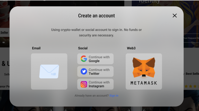 You can use your email and password to sign in. You can also join with your commonly used social media accounts to authorize sign in. We support quick authorization sign in with Google, Instagram, Twitter as well as MetaMask.
