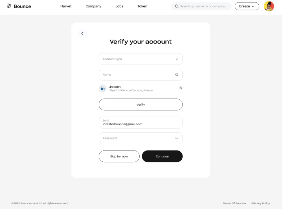 4\. Upon successful account creation, you will be asked to verify your account, which can be done by linking your Bounce account to your professional profile on popular platforms such as LinkedIn. This verification process ensures the authenticity of your account and enhances the security of the platform.
